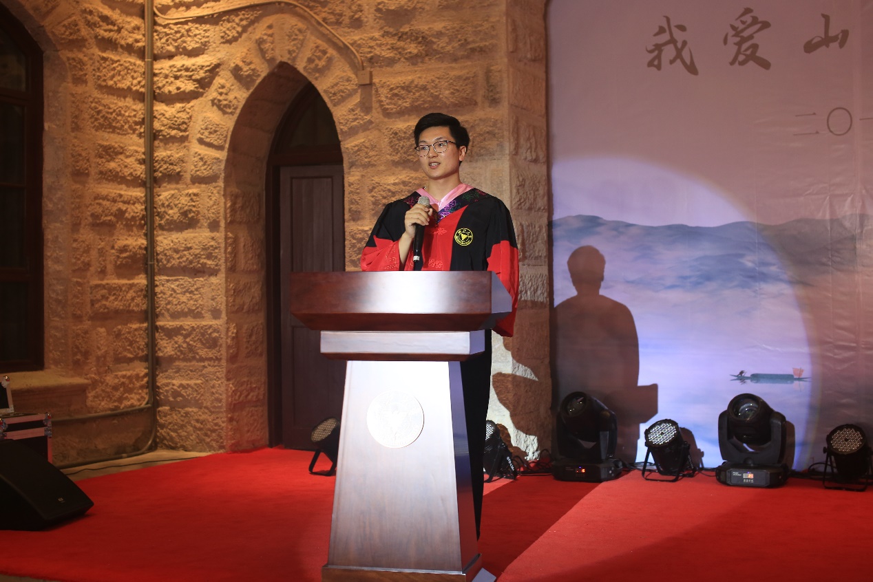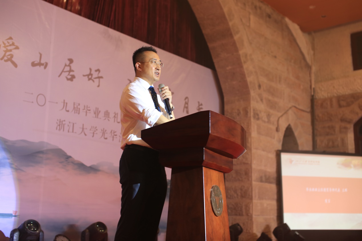 随后进入毕业生代表发言环节。博士毕业生代表陈兆誉在浙大度过了9年时光,即将进入国家工业和信息化部工作。他回顾了和学院一同成长的点滴。此间,之江在不断地成长变化,逐渐走向国际化,而不变的是默默坚守在各个岗位的工作人员。他说:“之江对每一位山民的影响就在于变与不变之中,潜移默化,熏陶成性。”