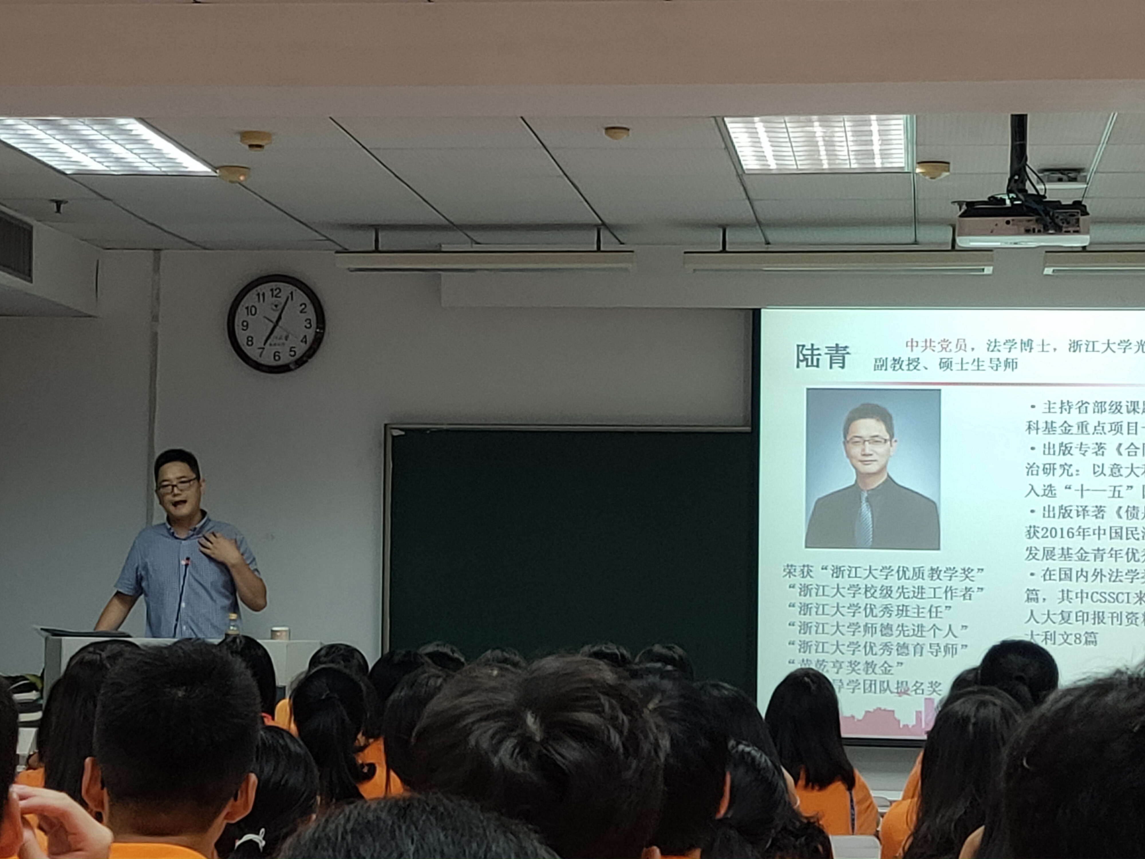 随后,陆青老师就大学与高中生活的区别说明步入大学,学生应努力具备选择能力、处理复杂事物能力等等。陆青老师说明选择人生之路,第一,需要认识自我,通过多方位发展、探索多种能力的方式,认识自我的不足与长处;第二,要培养决断力,理清理由结构、培养强逻辑性的思维习惯;第三,树立坚定的积极的价值观。陆青老师通过三件真实案例,以法律人的思考方式,向同学们说明简单与复杂的价值判断区别,并指出浙大学生应学会并树立更正确更坚定的价值观去看待社会,进而正确地制定适合自我的人生规划、正确地选择适合自我的发展之路。