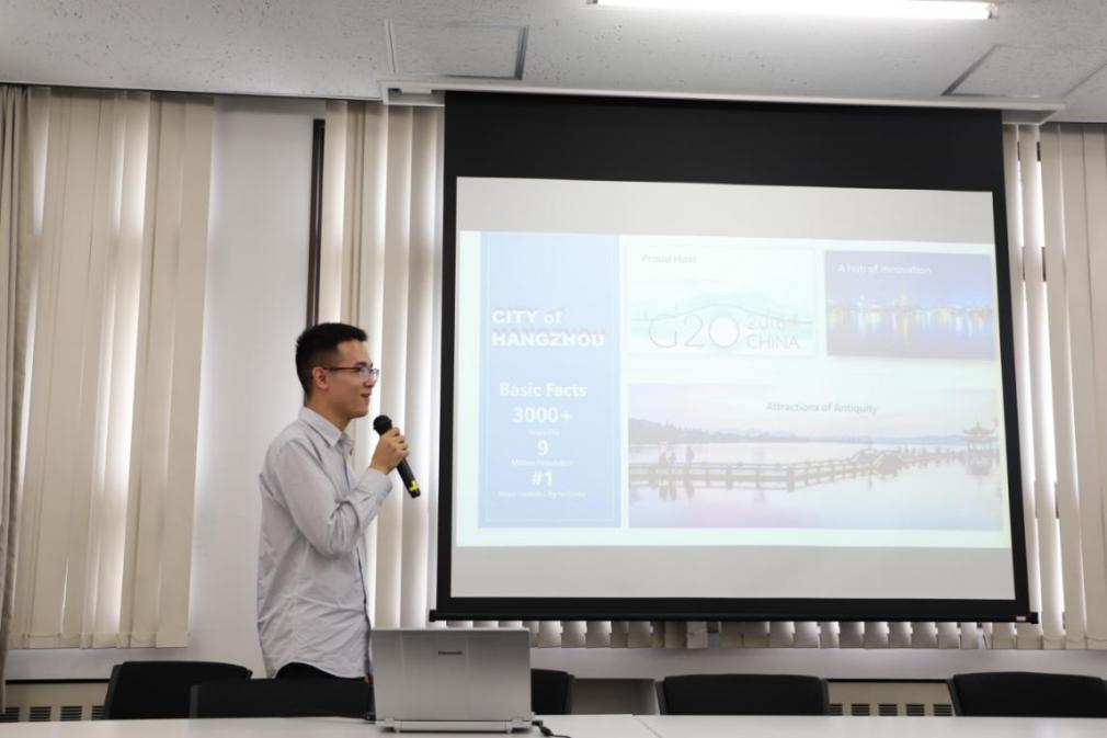 (詹东同学向早稻田大学老师介绍浙江大学及光华法学院)