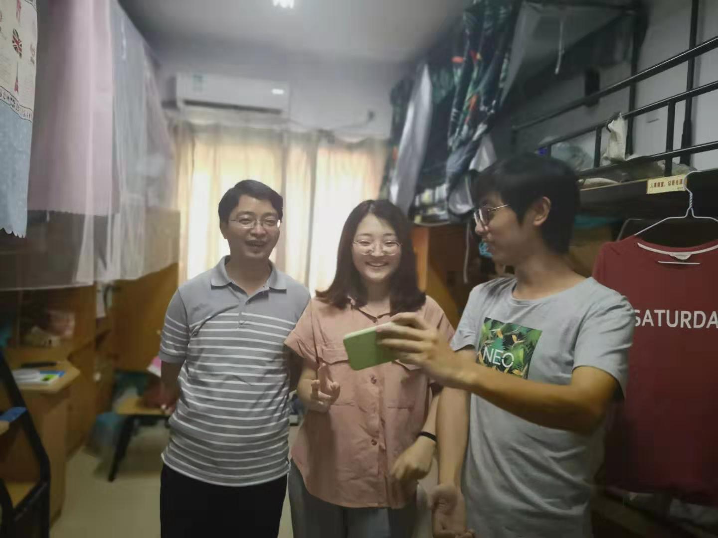 2019年9月10日中午,浙江大学光华法学院常务副院长周江洪、党委副书记吴卫华、副院长郑春燕、2017级班主任章程,在学院团委王书剑、骆笑、柴烈等老师和之江宿管办张何仙楼长的陪同下,一同探访了之江校区13舍、12舍、11舍、8舍、9舍等宿舍楼的新生寝室,与新上山的同学们亲切交谈。