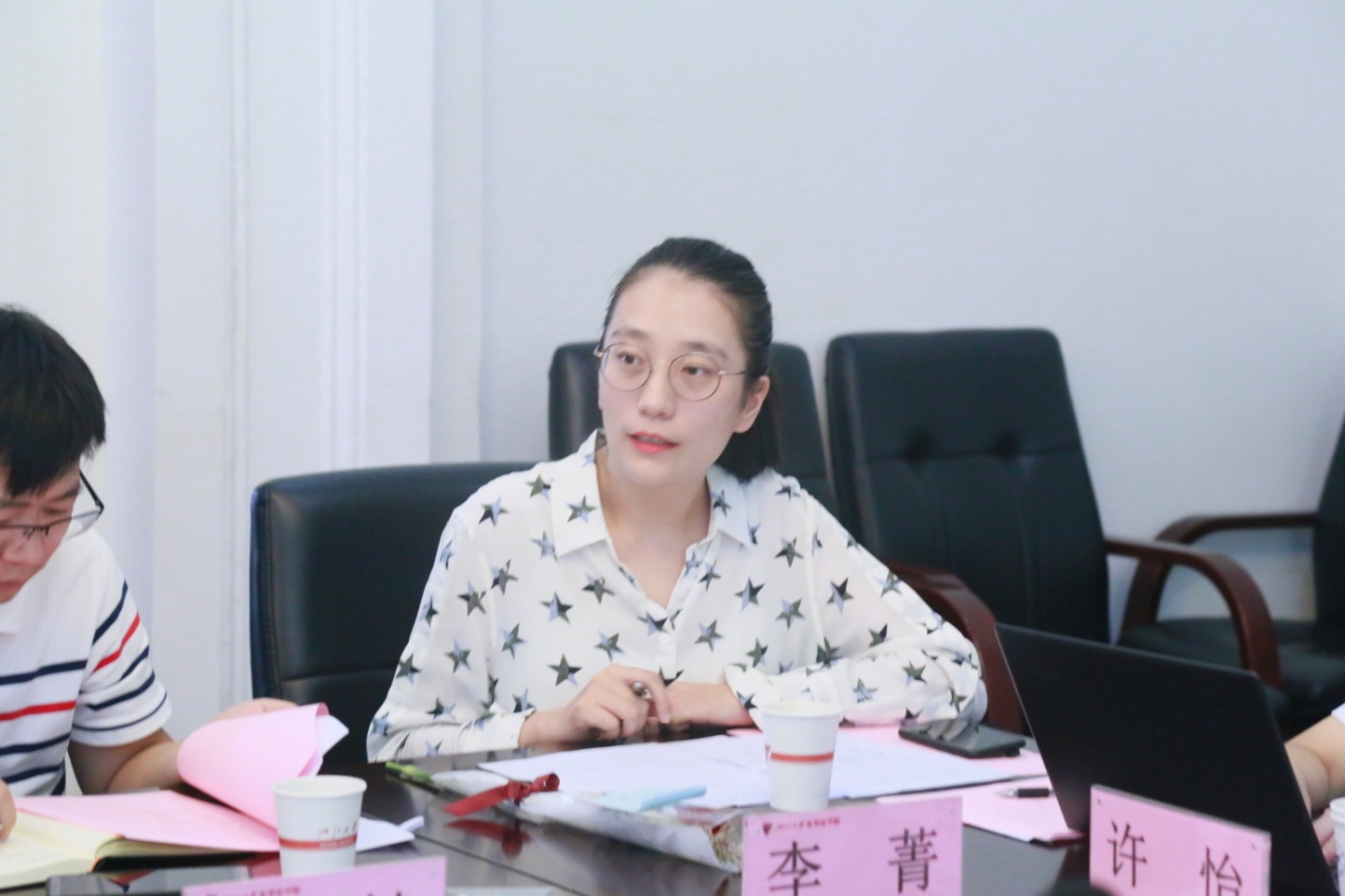人文高等研究院办公室主任李菁汇报了研究院基本情况,以及论坛讲座举办的一些相关制度,和研究院党支部建设工作。