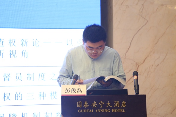 论坛第二单元由西南政法大学行政法监察法学院博士生付大峰主持,共有4位博士生、博士后报告,武汉大学法学院江国华教授担任指导老师。重庆大学法学院博士生范奇的报告题目是《论公立高校司法审查与法人化间悖论之消除》。吉林大学司法文明协同创新中心博士生侯明明的报告题目是《公安机关选择性执法风险的法院转嫁及其回应理路》。浙江大学光华法学院博士生陈明的报告题目是《政策问题不予审查的展开》。浙江大学光华法学院博士生王冲的报告题目是《行政程序正当性原则司法审查基准价值衡量》。