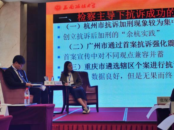 论坛第七单元由海南大学法学院博士生陈全真主持,共有4位博士生报告,浙江大学光华法学院葛洪义教授担任指导老师。中国政法大学证据科学研究院博士生贠丹的报告题目是《论受虐妇女综合症专家证据:理论反思与路径构建》。浙江大学光华法学院博士生张传玺的报告题目是《大数据侦查在刑事侦查中的运用困境及其法治化路径研究》。武汉大学法学院博士生赵天的报告题目是《新技术媒介对司法审判的影响和对策》。武汉大学法学院博士生赵晏民的报告题目是《刑事司法与人工智能“联姻”的制度价值、风险及其防控的副本》。
