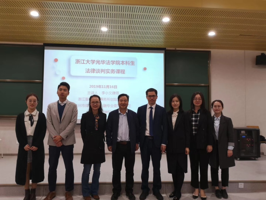 2019年11月16日,光华法学院很荣幸地邀请到了浙江智仁律师事务所创始合伙人李小文律师以及他的团队为我们本科《法律谈判》课程带来了内容丰富精彩的专题讲座和谈判演习。