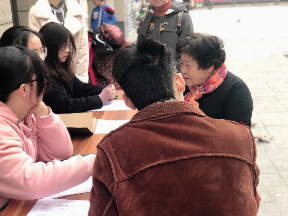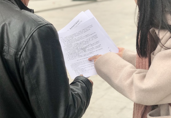 上午9时,在课程助教的悉心指引下,同学们准时开始一系列的工作。在高效完成了联系社区工作人员、选址、搬运桌椅、悬挂横幅后,同学们迅速分工并开始了普法宣传活动。由于此次宣传特地选在了白塔岭社区活动日开展,加之杭城冬日久违的好天气、社区公益人员的积极协助和同学们的高涨热情,本次活动的群众参与度相当高。在法律知识宣传单的分发过程中,同学们时常遇到路过居民的主动问询;而现场法律咨询的小桌也始终忙忙碌碌。
