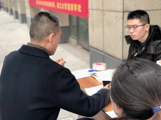 2019年12月15日,由浙江大学光华法学院法律诊所、浙江大学清源学社联合组织的“法治建设全民参与,和谐社区你我共创”2019秋冬学期第二次送法进社区活动在杭州市白塔岭社区开展。本次活动在胡铭老师、吴勇敏老师、陈信勇老师、章剑生老师、高艳东老师、许建宇老师、陆青老师等的指导下,与白塔岭社区居委会进行合作,以发放法律知识宣传单、现场法律咨询等形式,积极服务群众,力求为全面推进依法治国、构建法治社会添砖加瓦。
