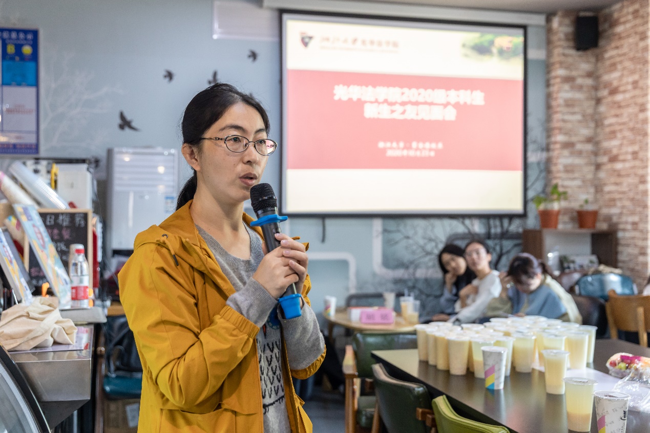 咖啡醇香相伴的温馨气氛里,赵骏副院长为本次见面会做了开场致词,表达了对2020级新生们的殷切期望。赵骏副院长强调,历经疫情考验的2020届浙大学子们要抓住今后学习生活的三要件:对自己做的事情有兴趣;尽力发挥自己的优势;结合个人选择和国家需求。今后走上社会也需谨记三个良方:怀有大梦想大胸怀;培养与大梦想大胸怀匹配的能力,尤其是分析、思维、沟通、表达四方面能力;保持健康的身体,以形成自身的硬实力。赵骏副院长也介绍了光华法学院的基本概况,表示欢迎同学们到之江校区观赏游玩。