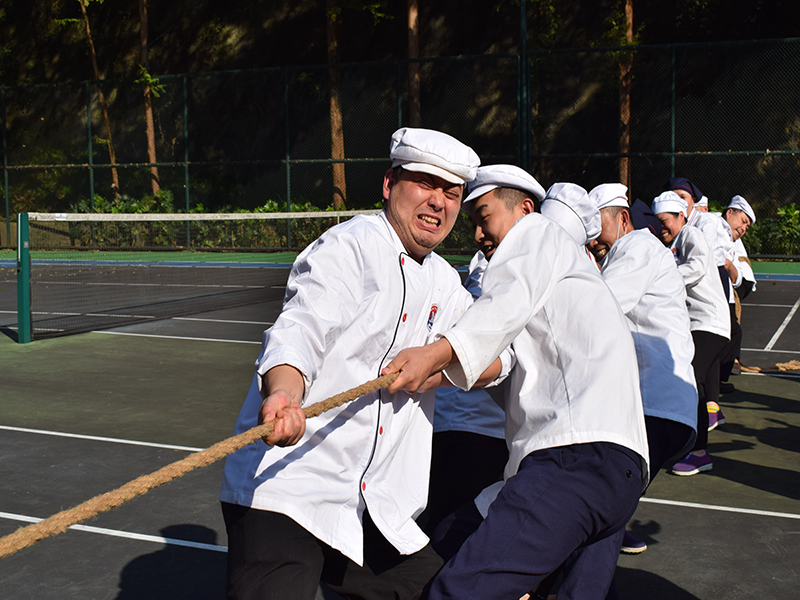 在经过一番激烈的角逐之后,学生队伍最终获得第一名的队伍为2020级法硕二班。随后,学生队伍冠军队与食堂师傅代表队开展了一场友谊赛,最终食堂师傅代表队更胜一筹。