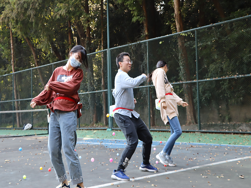 紧接而来的是考验体力与技巧的趣味运动会,包括鸡仔下蛋、蒙眼互打、扔沙包三个项目。