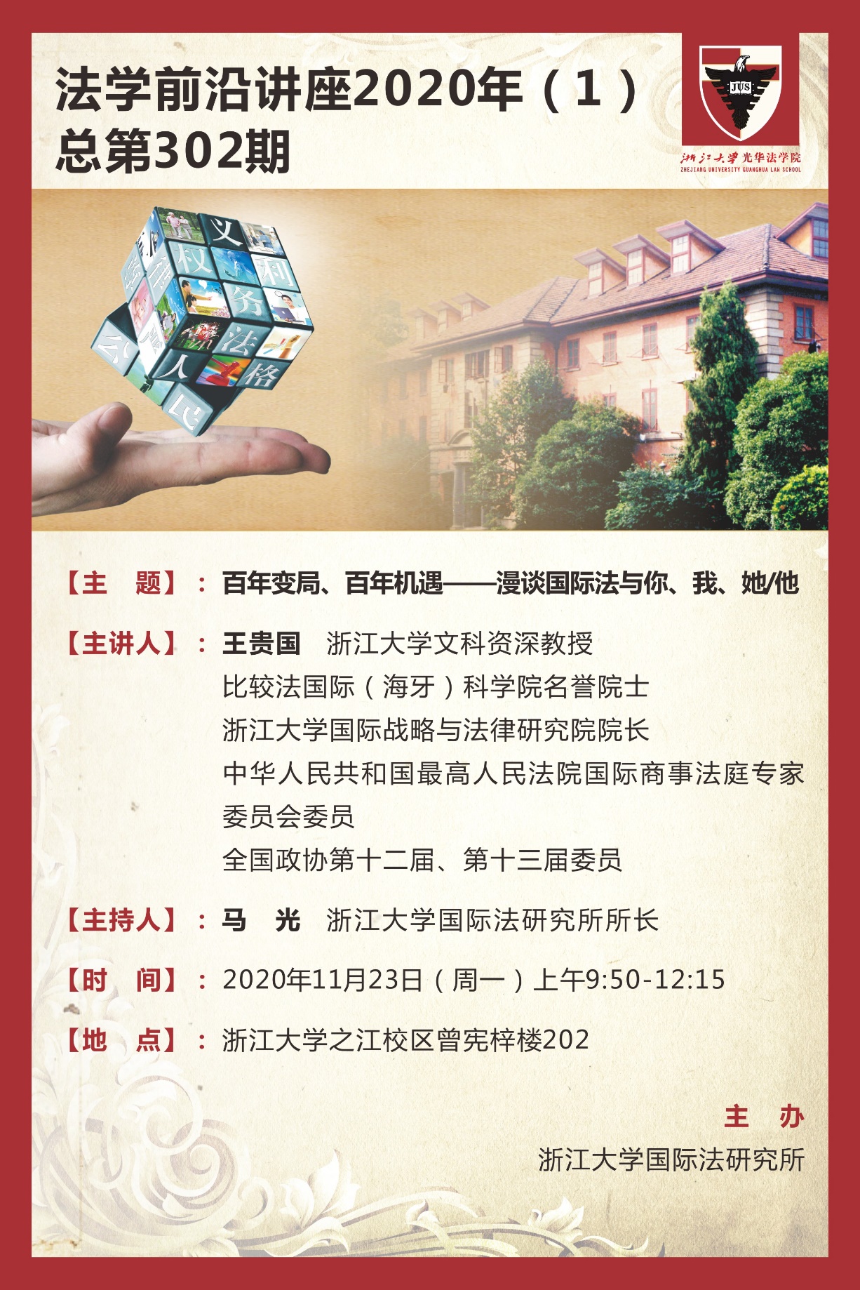 【主讲人】:王贵国 浙江大学文科资深教授