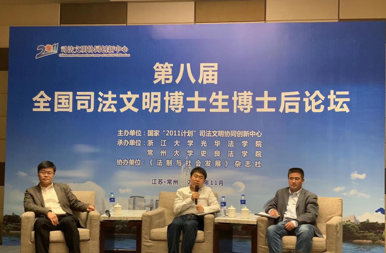 21日晚,本次学术交流活动的第二部分——“数字时代的法学研究”学术讲座在继续进行。本次讲座由常州大学史良法学院张建副院长主持,浙江大学光华法学院胡铭教授、吉林大学法学院李拥军教授、常州大学史良法学院夏纪森教授展开对谈。30多位司法文明相关专业博士生、博士后和数十位常州大学史良法学院的本科生、硕士研究生前来听会。