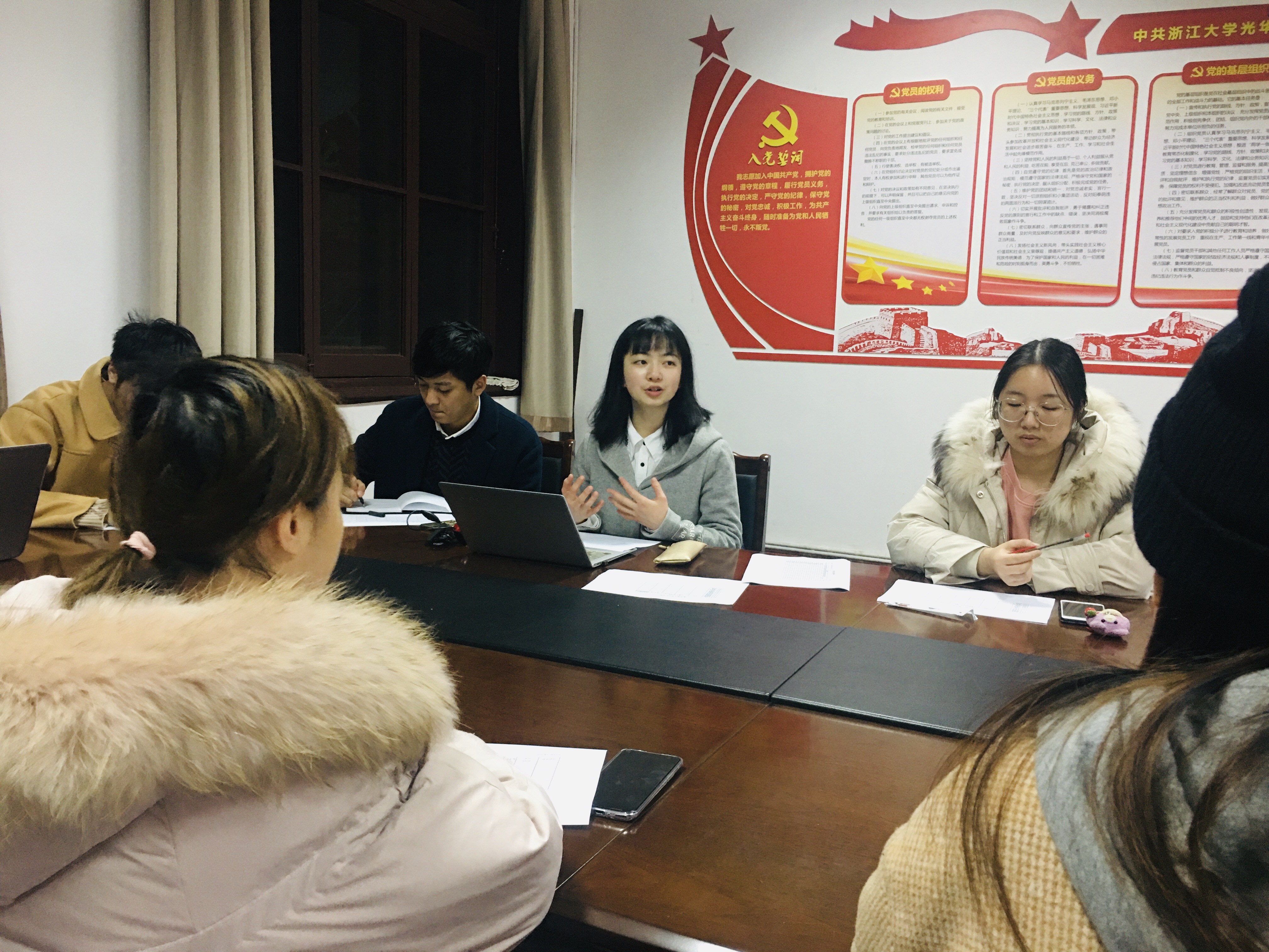 2020年12月11日晚,浙江大学光华法学院本科生第一支部组织生活会暨12月党员大会在之江外文馆党员之家召开,支部书记郑君曼主持会议。