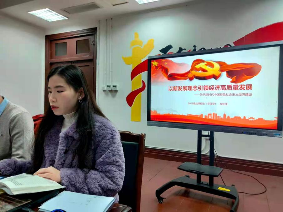 郑佳佳同志的分享主题为“以新发展理念引领高质量发展——关于新时代中国特色社会主义经济建设”。细致认真地介绍了新发展理念是指挥棒、红绿灯,我国经济由高速增长转向高质量发展阶段,在要使市场在资源配置中起决定性作用、更好政府作用,把推进供给侧结构性改革作为主线,建设现代化经济体系。