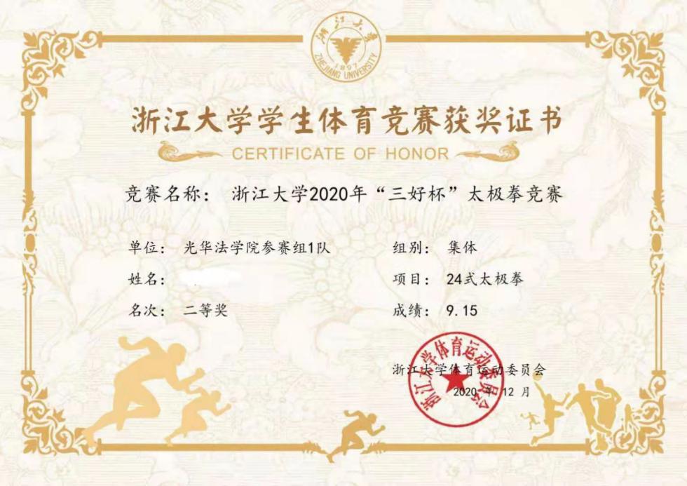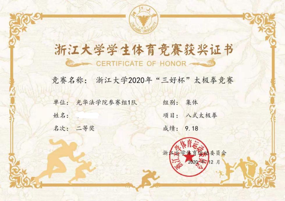光华法学院代表队参加浙江大学2020年“三好杯”太极拳比赛