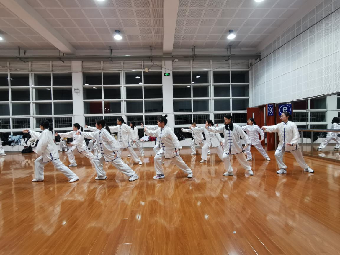 同学们早早地开始备赛,除了积极参与两次学校民传团队组织的太极拳辅导站,还利用晚课下课的时间进行练习,共排练了五次。练习的时候,同学们互相纠正动作,并就一些难度动作进行商讨和反复尝试,力求让每个动作都更加标准并且整齐统一。同学们十分重视此次比赛,尽可能多地参与练习。最后一次集体排练是在比赛前,之江的同学也参加到排练中,和大家一起耐心地反复打磨动作。