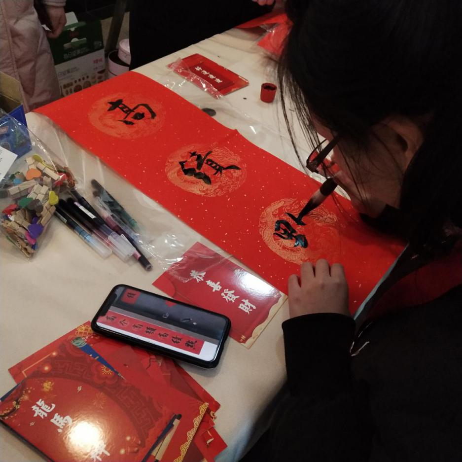 书写春联环节,工作人员备好笔墨纸砚,同学们用笔尖祈愿,抒写着最朴实也最真切的祝福语,2021年一切都会如愿以偿。