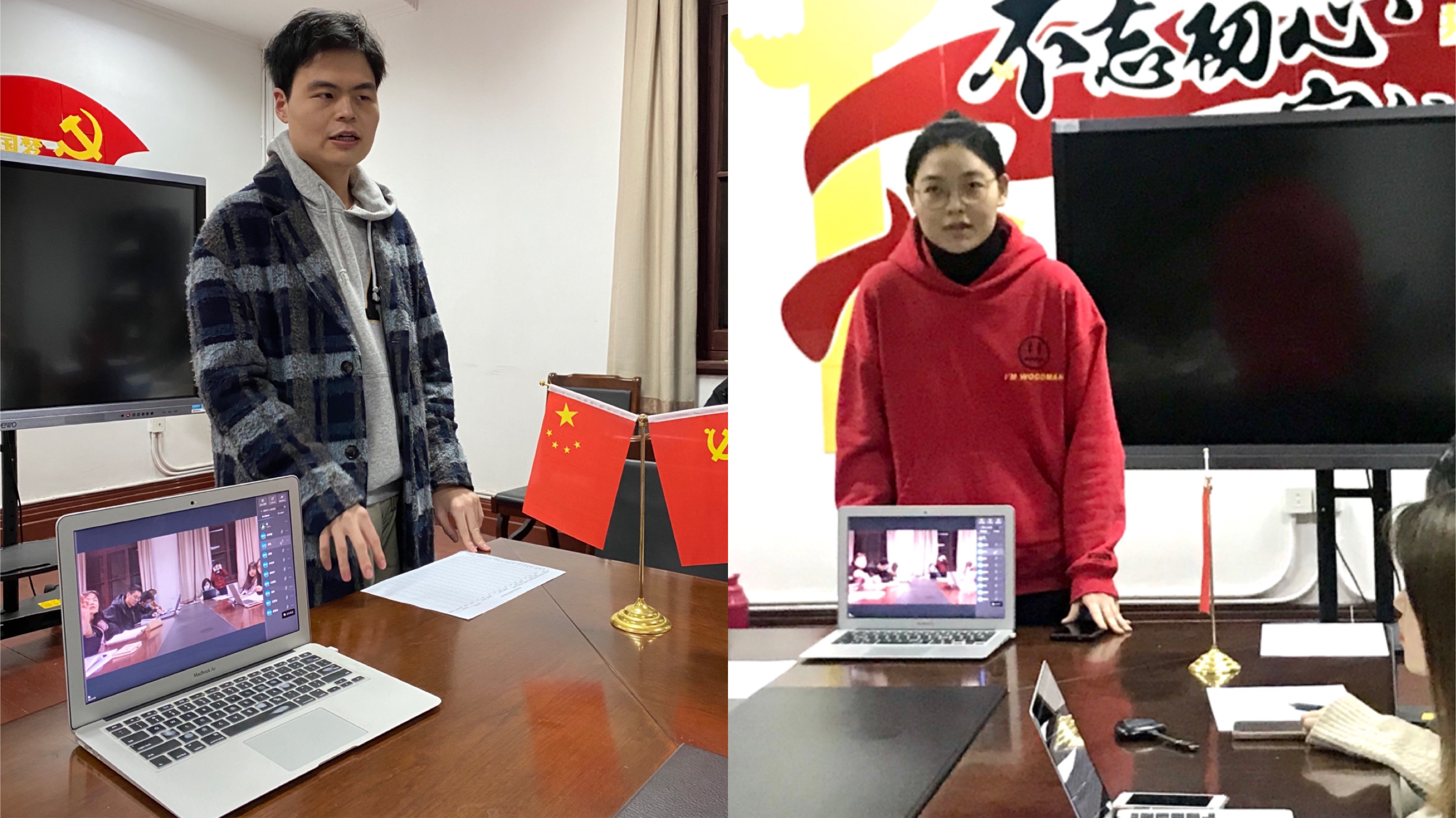 首先,由张月、马子滟同志对其所参加的党支部志愿者活动发表感言。两位同志结合自己为本科生进行普法的经历向支部成员分享了自己的心得体会,表达了作为一名先进的共产党员应该具有的情怀,也发现了法学与其他学科交叉所具有的强大能量。