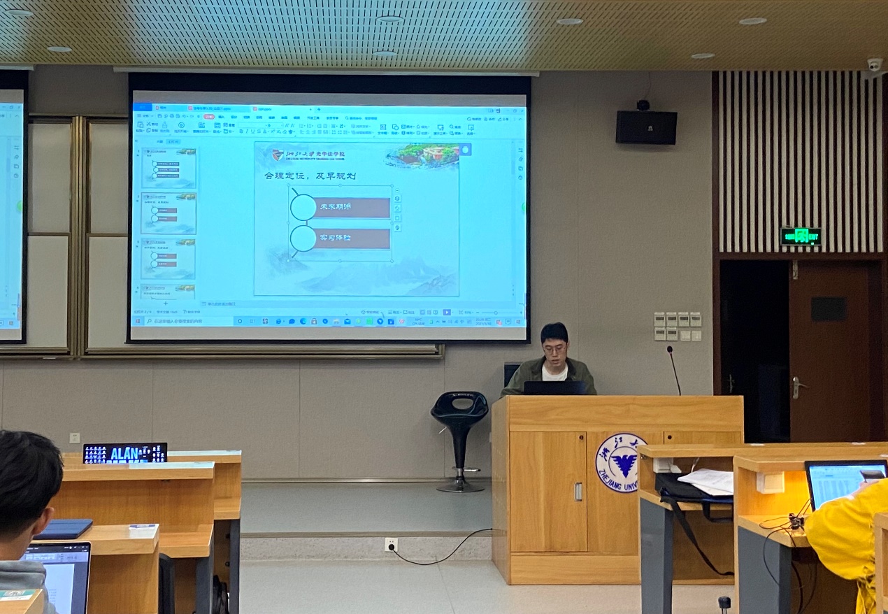 丁俊雄同学介绍了定向选调、中央选调的基本情况,在职业方向的选择上,丁同学建议大家不要贪多,最好在实习、律所企业求职、公务员考试和选调中选择好一条道路进行准备。在定向选调的选择中,他也建议大家可以多参与几个省的选调考试,在参与了之后再进行选择。每个省的政策不同,要注意自己是否满足目标省份的三项基本条件要求(党员、一年学生干部经历、校级荣誉,需要三项或者其一),提前做好准备。丁同学也认为选择岗位是相当重要的部分,巧妙的选择岗位能为合理为自己规避竞争,获得更大的录用机会,另外也要注意各个地方及岗位的具体情况,合理避坑。最后丁同学介绍了选调中申论和行测考试的情况,申论需要侧重刷题,行测中最重要的则是时间规划(在国考中时间压力会比较大),在申论中也要注意字体的练习,好的字体会加分不少,模板的使用也是见仁见智,他建议大家应当多多参与模考与考试,在实践中锻炼自己。在面试中,丁同学则建议大家学会说出自己的真实感受,切实把自己处于这个场景,而不一昧依赖于辅导班的指导,并学会展示你的两到三个亮点,让他们觉得你就是他们需要的人。