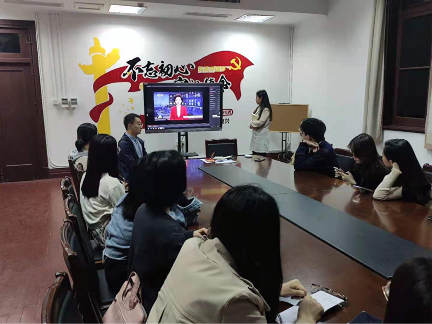 接下来,孟令晨旸同志带领同志们集中学习了《习近平总书记在党史学习教育动员大会上的重要讲话》和《习近平新时代中国特色社会主义思想学习问答》。她首先向同志们展示了新闻联播中的时事片段,以此引入党课的主题——“从党史学习中汲取力量”。她指出,深入学习贯彻习近平总书记在党史学习动员大会的重要讲话精神,高质量开展党史学习教育,是本支部当前和今后一个时期的重大政治任务,需要各位党员同志严肃对待、认真参与。孟令晨旸同志以习近平主席在党史学习动员大会上的名言金句为抓手,带领同志们从“中共党史是什么?”、“为什么学习党史?”以及“如何学习党史?”三个维度领会党中央的精神,明确党史学习的重要意义和具体方式。