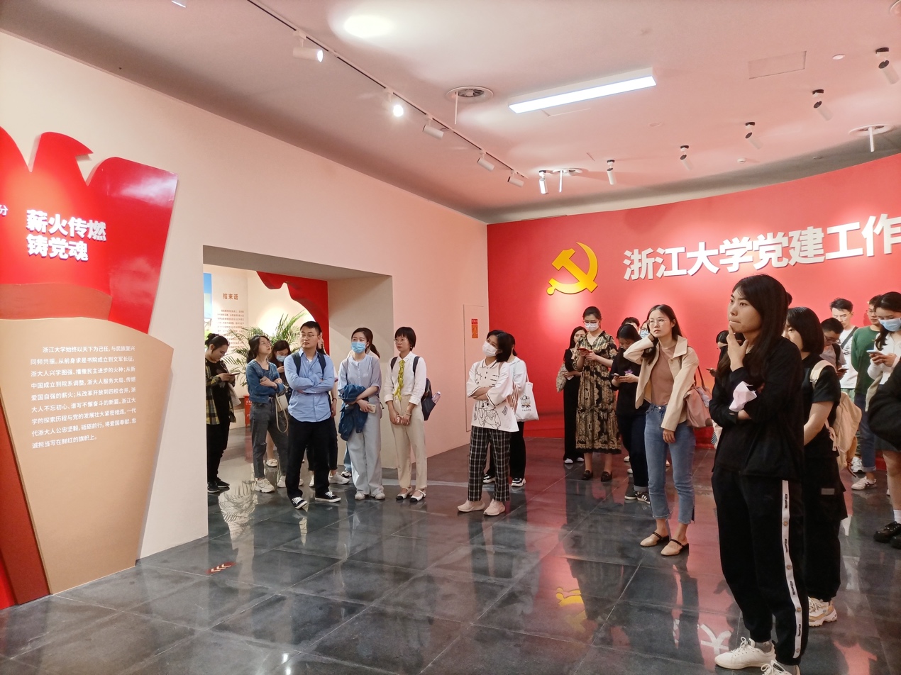 在讲解员的指引下,预备党员和入党积极分子们在展板前纷纷驻足观看、认真聆听。一幅幅图片、一张张图表、一件件实物,多角度、全景式将参观者带入时光隧道,令人震撼和动容。通过图文及讲解员全面的讲解,学员们再次回顾了中国共产党的创建史,特别是对红船精神所蕴含的中国共产党的初心和使命有了立体的感受和理解。同时,从历代浙大人的身上看到了熠熠生辉的信仰之光,感受到了身正为师、行为示范的榜样力量。在中国共产党的领导下,从竺可桢、费巩,到于子三、虎罴,再到程开甲、林俊德,一代代共产党人用热忱甚至生命诠释着“求是”精神,带领浙江大学向着更高水平发展。