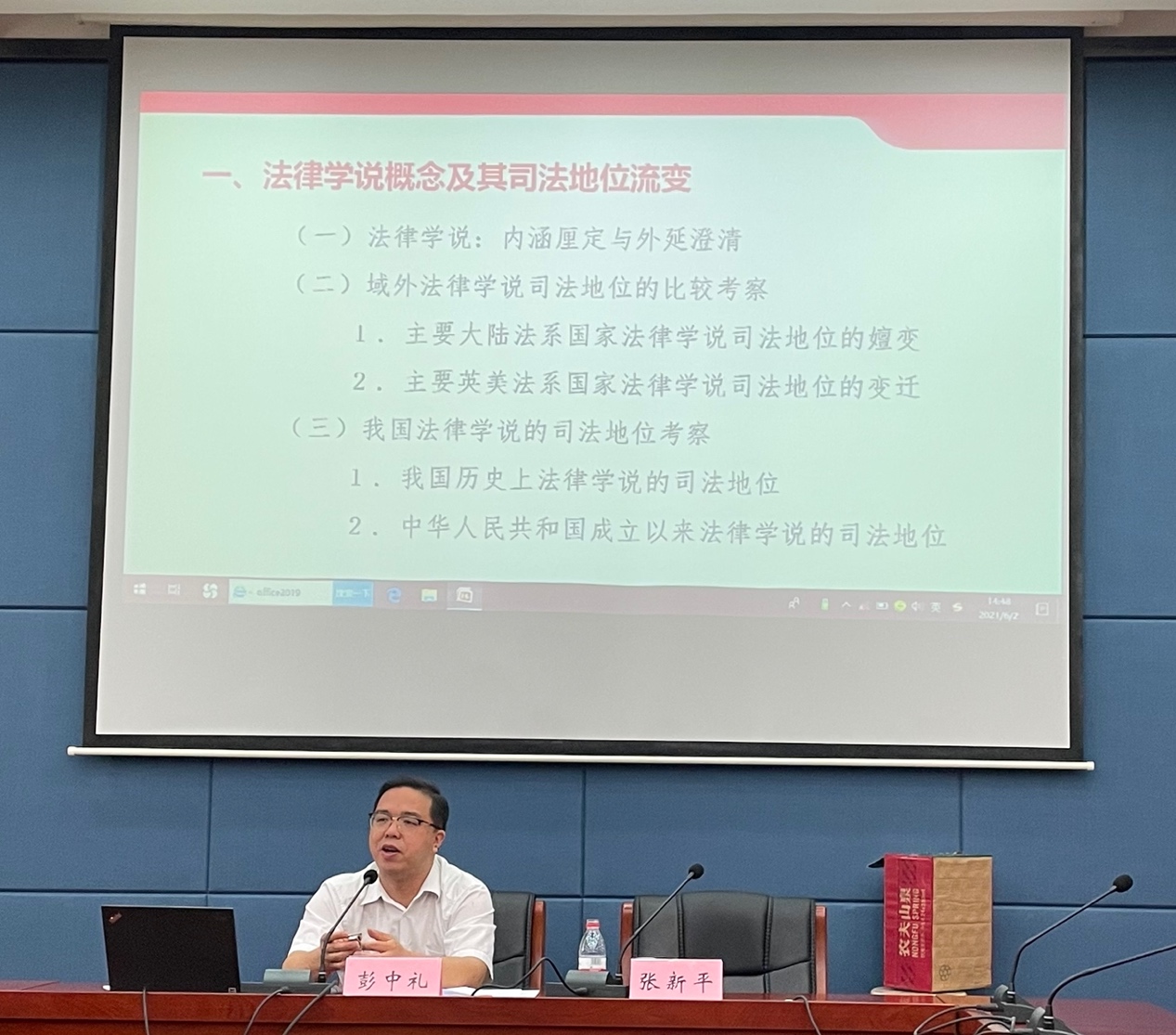 6月2日下午,中南大学法学院副院长彭中礼教授作了以“论法律学说的司法运用讲座”为题的讲座,并与各位博士研究生进行座谈交流。彭中礼教授指出法官对法条的援引,本质上就是对法律学说的运用,而这一运用又促进了法律学说的推陈出新。他认为,在当前我国司法改革背景下,法律学说司法运用制度具有强化裁判说理及提升司法裁判可接受性的价值,同时也是法律理论演化的动力机制,要以立法的形式确立法律学说的司法运用制度,确定立法原则、明确法律学说的界定标准。