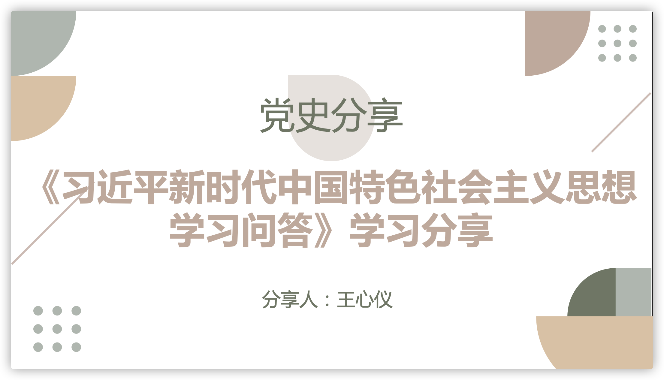 接着,王心仪同学分享了她学习《习近平新时代中国特色社会主义思想学习问答》的体会。她从书目中的思想之旗领航向、人间正道开新篇、初心砥柱天地间、“四个全面”擎宏图、“五位一体”谱华章、千秋伟业强基石和万山磅礴有主峰七个版块展开分享,结合问答的时代意义系统、全面地进行了分享。