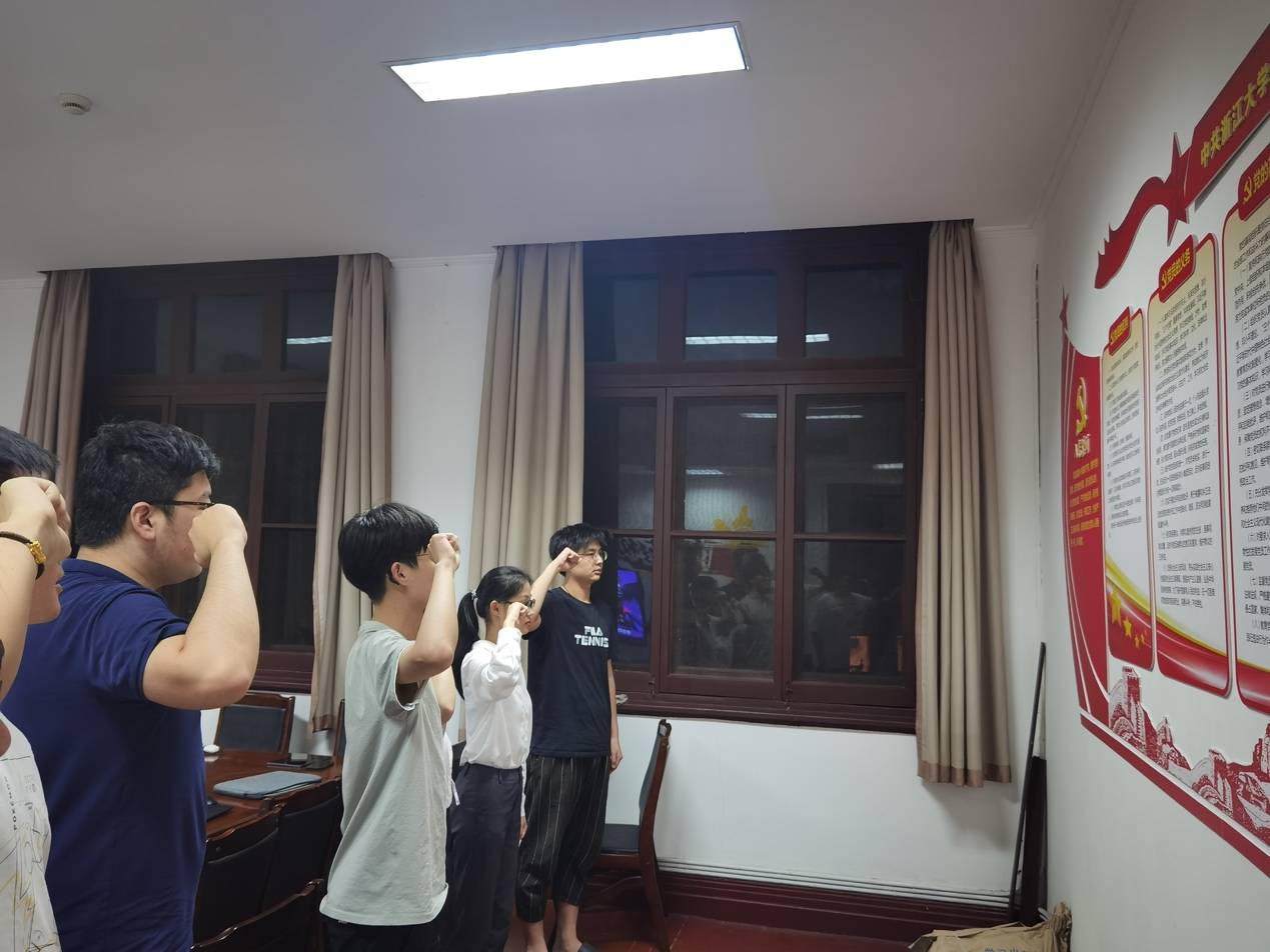 会议的尾声,支部党员一起重温入党誓词,在即将到来的建党节前夕,回顾自己的入党初心。