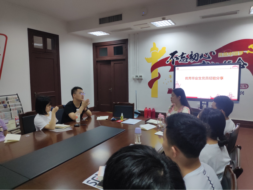 随后,支部优秀毕业生赵博理同志分享择业经验。赵师兄结合当下大学生就业的挑战与机遇,从自身求职经历出发,讲述了自己对选调生考试的认识和岗位抉择。赵师兄首先介绍各个地区选调生的政策要求,告知同志们要对照自己意向岗位的条件提前做好准备。然后,赵师兄详细地介绍了自己考取外交部的笔试与面试的宝贵经历,让各位同志了解到笔试与面试的比重和面试中的具体流程。赵师兄热心地回答了师弟师妹的提问,所作的回答不仅仅局限在选调生的考取,也谈到了自身其他方向的求职历程。最后,赵师兄鼓励各位同志要把握好在校期间的时光,扎实学习专业知识,锤炼自身意志。