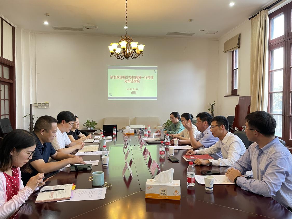 7月21日下午,上海财经大学校长助理郑少华一行莅临学院调研,同行的有上海财经大学法学院院长宋晓燕,院长助理徐键,实验实践教学中心主任李睿,团委书记孙伟。座谈会在之江校区主楼208会议室举行。