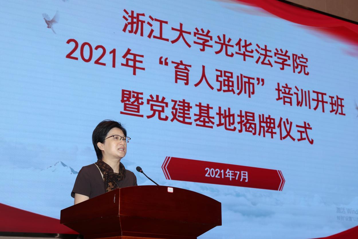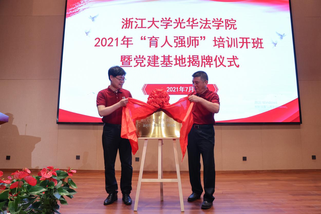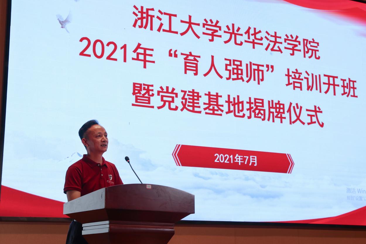 7月17日上午,浙江大学光华法学院“育人强师”培训开班暨党建基地揭牌仪式在中共诸暨市委党校、绍兴枫桥学院举行。诸暨市委副书记、政法委书记潘超英与学院党委书记张永华分别为培训班开班致辞。浙江省新时代枫桥经验研究院院长金伯中与学院常务副院长胡铭共同为新时代“枫桥经验”研究院党建基地揭牌。浙江大学副校长黄先海为全体学员做“改革开放史视野下的政府与市场关系”专题讲座。本次仪式由学院党委副书记、纪委书记吴卫华主持。