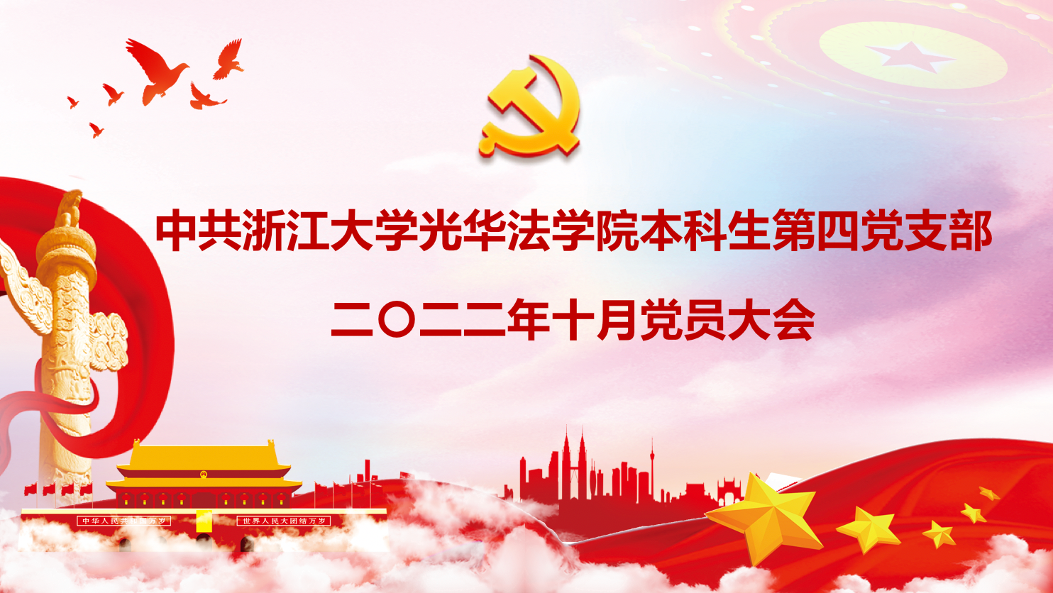 2022年10月21日下午,浙江大学光华法学院本科生第四党支部在党员之家,召开了本学期第一次党员大会暨换届选举会议。会议由沈婧麒同志主持,支部指导老师周淳老师、本科生第四党支部全体成员共同参与。