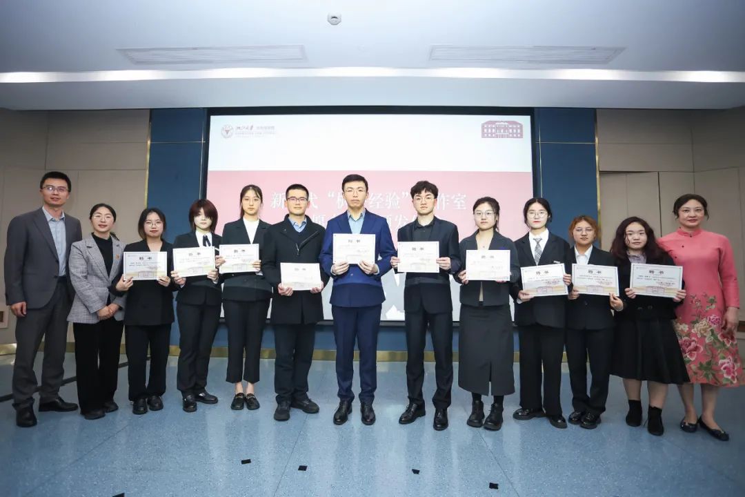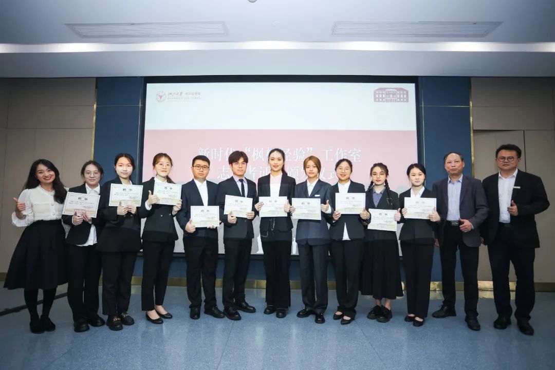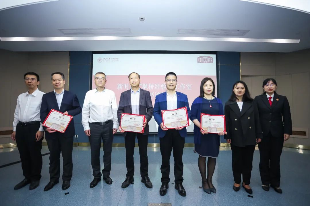 和合担当解矛盾,德法兼修报家国,浙江大学光华法学院新时代“枫桥经验”工作室将致力于把新时代“枫桥经验”创新融入并应用到学生思政工作中。叶桂方老师、叶晓萍老师、胡铭老师、江雪梅老师、金芳芳老师共同上台为工作室揭幕。