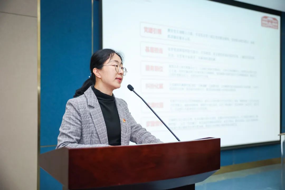光华法学院党委副书记、纪委书记李冬雪介绍光华法学院新时代“枫桥经验”工作室(简称“新枫”工作室)基本情况。创建工作室是深入开展学习贯彻习近平新时代中国特色社会主义思想主题教育的实际行动,将新时代“枫桥经验”创新融入并应用到学生思政工作中,使高校学生思政工作与国家发展期待、社会治理要求、学生成长成才需求有机融合,引导师生青年学习、研究、运用新时代“枫桥经验”。工作室将从党建引领、基层担当、服务到位、纠纷化解、情满校园、家国情怀六个维度发挥作用、展现价值。李冬雪老师还介绍了工作室的架构以及“青枫调解”志愿服务、新时代“枫桥经验”宣讲、新时代“枫桥经验”研习等具体工作内容。