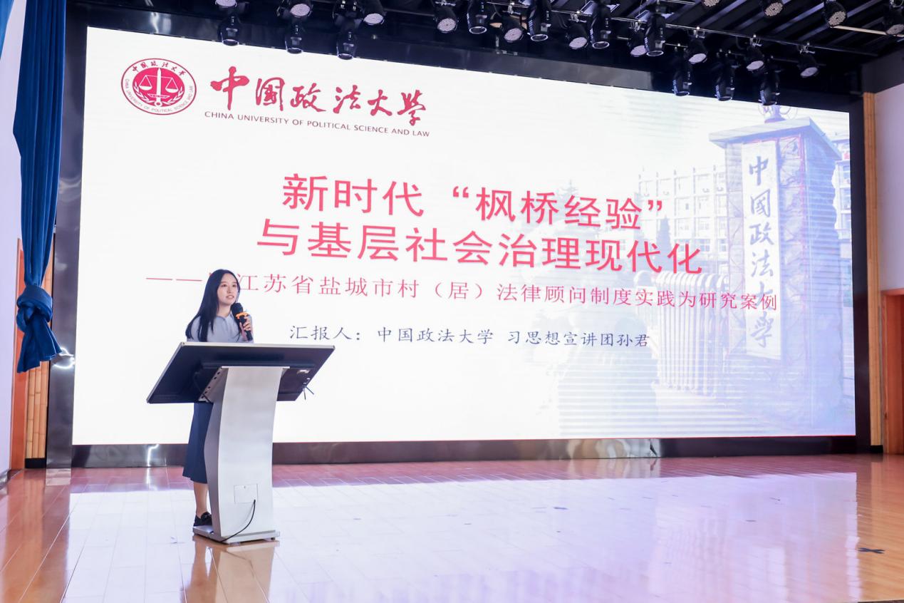 中国政法大学习近平法治思想宣讲团讲师孙君作《新时代“枫桥经验”与基层社会治理现代化——以江苏省盐城市村(居)法律顾问制度实践为研究案例》主题宣讲。她讲解了“枫桥经验”的内涵嬗变,并指出新时代“枫桥经验”已不限于矛盾纠纷化解的经验,不限于政法综治领域的经验,而成为新时代践行党的群众路线、推进基层治理现代化的经验。通过对新时代“枫桥经验”的典型案例——村(居)法律顾问制度的分析,她提出了新时代“枫桥经验”助推基层治理现代化的实践路径。