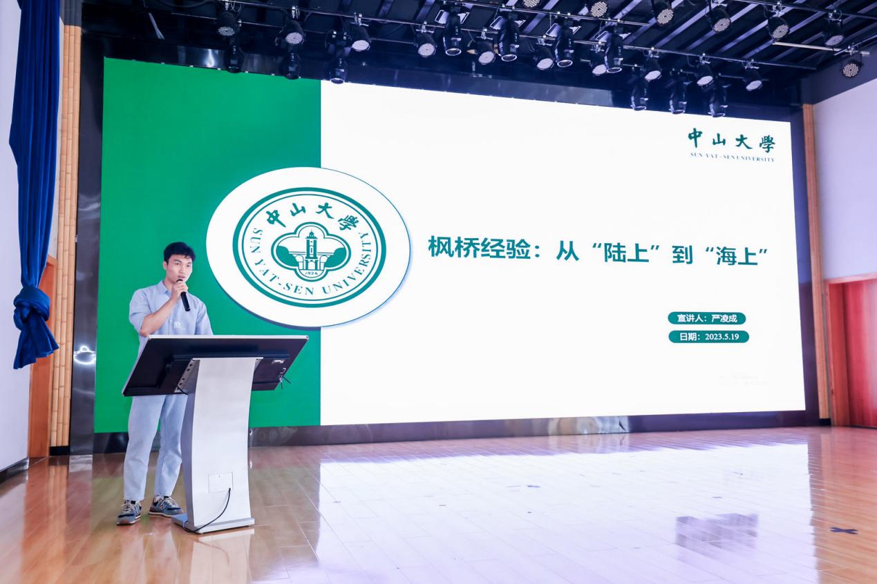 中山大学习近平法治思想青年研习会讲师严凌成作《“枫桥经验”:从“陆上”到“海上”》主题宣讲。他解答了“枫桥经验”为何要从“陆上”到“海上”的问题以及“海上枫桥经验”的内涵,并且分享了海上枫桥经验的实践案例。他指出,新时代“海上枫桥经验的”核心要义是坚持以人为本,强调诉源治理,重视多元共治,宣倡法治海洋。