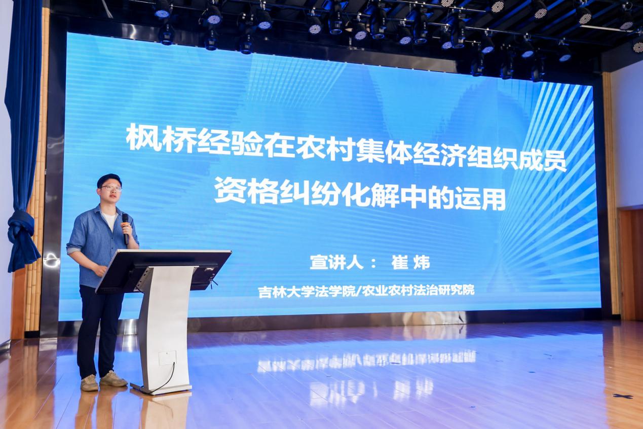 吉林大学习近平法治思想宣讲团讲师崔炜作《“枫桥经验”在农村集体经济组织成员资格纠纷化解中的运用》主题宣讲。他从成员资格纠纷化解在完善乡村治理体系中的重要性、“枫桥经验”在成员资格认定过程中的具体运用这两个方面展开分享。他表示,具体运用的重心应落在特殊群体的成员资格保护上,相比一般的农民群体,特殊农民群体在进行集体经济组织成员资格认定时,面临着更加错综复杂的情形,因而需要特别注意并予以重点保护。
