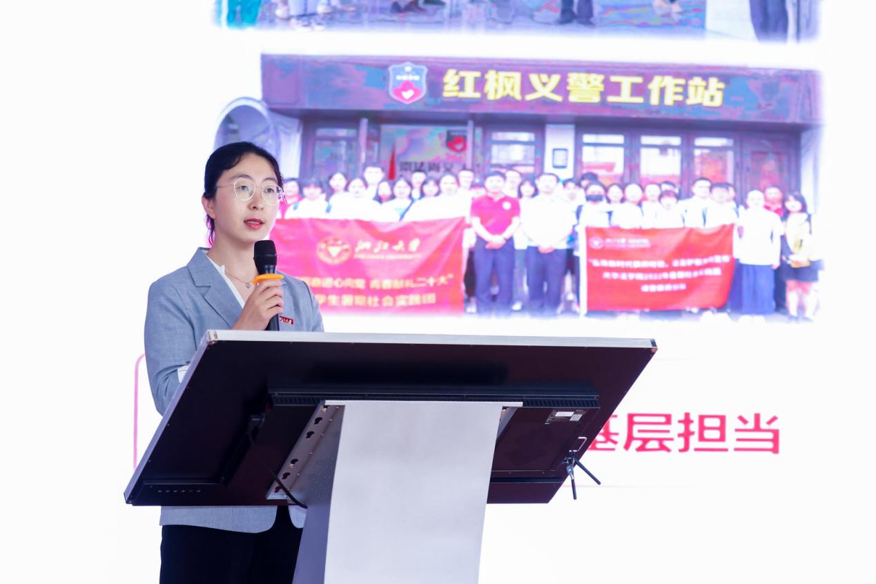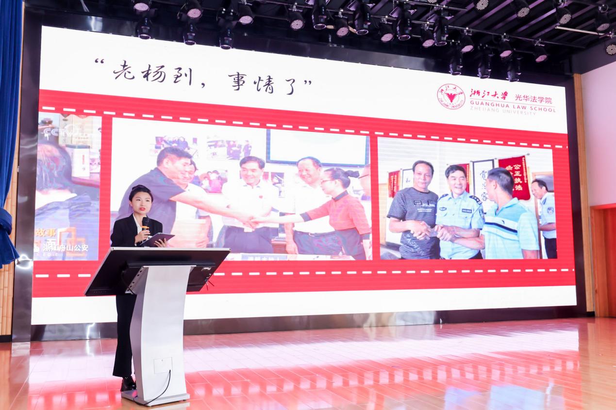 张晓洁老师为本次宣讲活动作开场致辞。她在致辞中对本次宣讲的背景意义进行了简要介绍。她表示,“枫桥经验”是浙江的光荣和骄傲,坚持和发展新时代“枫桥经验”是浙江大学的责任和担当。浙江大学法学学科深入对接中央及地方发展战略需求,积极探索依法治国新经验,光华法学院以“一中心+四平台”为建设重点,新时代“枫桥经验”研究院就是其中重要研究平台。她指出,希望大家抓住七校学子齐聚一堂的宝贵机遇相互学习、共同进步,在学思践悟习近平法治思想方面有新的收获和提升。