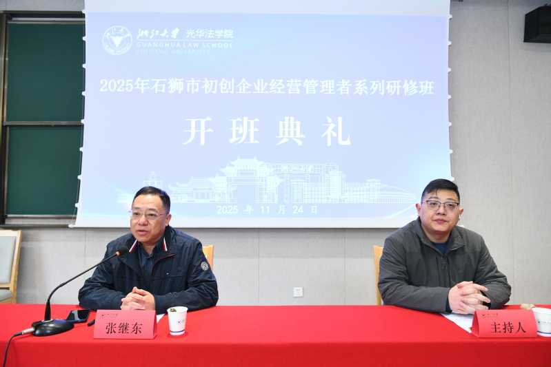 11月24日上午,浙江大学——2025年石狮市初创企业经营管理者系列研修班顺利开班。浙江大学光华法学院院务委员、继续教育中心主任兼发展联络办主任张继东出席开班式。