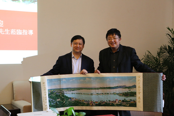 胡炜书记代表学院向黄英�先生赠送了学院和学校的纪念品。