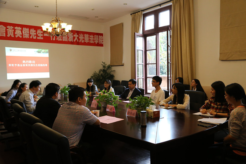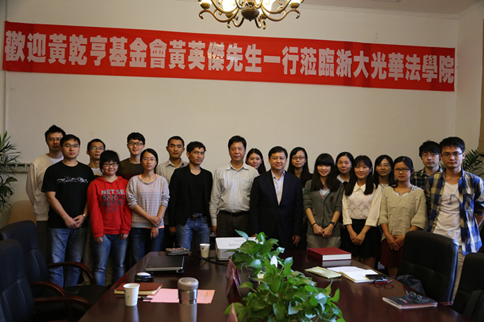 10月21日下午,香港黄乾亨基金会理事黄英�先生来访我院,并在主楼208与学院师生进行了交流座谈。出席座谈会的有学院常务副院长朱新力,党委书记胡炜,党委副书记吴勇敏,党政办主任林俐,发展联络办公室费善诚老师,教师代表巩固老师和获奖学生代表等。