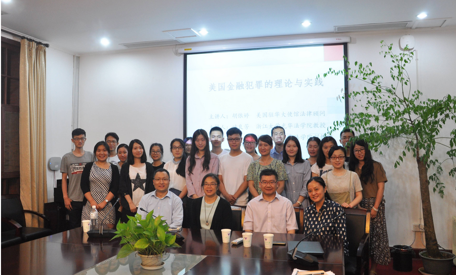 2017年6月1日晚,以“美国金融犯罪的理论与实践”为主题的刑事法前沿论坛在之江校区5号楼206室召开。本次讲座由美国驻华大使馆法律顾问胡依婷女士主讲,我院叶良芳教授主持,浙江警察学院的徐鹏老师和林超老师作为嘉宾参与本次论坛。