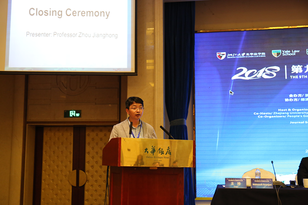 会议闭幕式由浙江大学文科资深教授王贵国主持,浙大光华法学院常务副院长周江洪教授、耶鲁大学国际法教授Michael Reisman分别发表了闭幕演讲。本次会议在相互交流与借鉴中,产生了知识和学术成果的碰撞,就国际法中一带一路相关问题研究、争端解决、战争法、中美贸易、国际投资、国际知识产权保护等领域的前沿问题,由国内外顶尖国际法专家阐述了最新研究成果和研究动向,推动了当代国际法和比较法的学术研究。