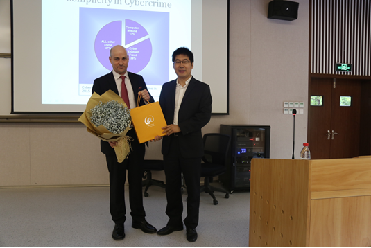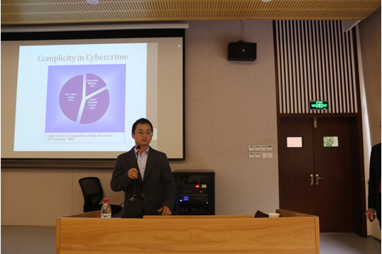 首先,Dennis教授介绍了英国网络犯罪的现状。他向同学们展示了2015年英国发生的不同犯罪类型所占的比重:其中网络犯罪占比53%,已经超出了其他犯罪类型的总和。Dennis教授指出,网络犯罪不仅数量多,其危害性也要高于传统犯罪。涉及现代电信以及互联网技术的网络犯罪,不仅会造成个人的人身伤害和财产损失,也会威胁一个国家的安全状况,尤其是关于公民隐私泄露、黑客入侵、网络盗版、淫秽物品传播等的网络犯罪问题已经愈演愈烈。根据诺顿网络安全公司的一份报告,2017年黑客从消费者手中总共窃取了1300亿英镑,其中有46亿英镑来自英国互联网用户。在过去的一年中,有超过1700万英国人受到网络犯罪的袭击,人们开始意识到问题的严重性。