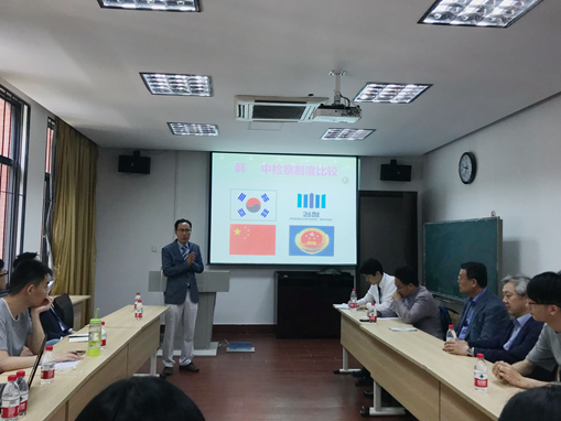 2018年6月12日,韩国大邱市高级检察厅主任检察官郑盛允在浙江大学之江校区7楼111教室为我院学生带来了题为《韩国与中国的检察官制度比较》的专题学术报告。牟绿叶老师为讲座的主持人,马光副教授教授为讲座的嘉宾并担任报告翻译,此次与郑盛允检察官同行的韩国法院及律师界代表也出席了本次报告,会场气氛热烈,座无虚席。