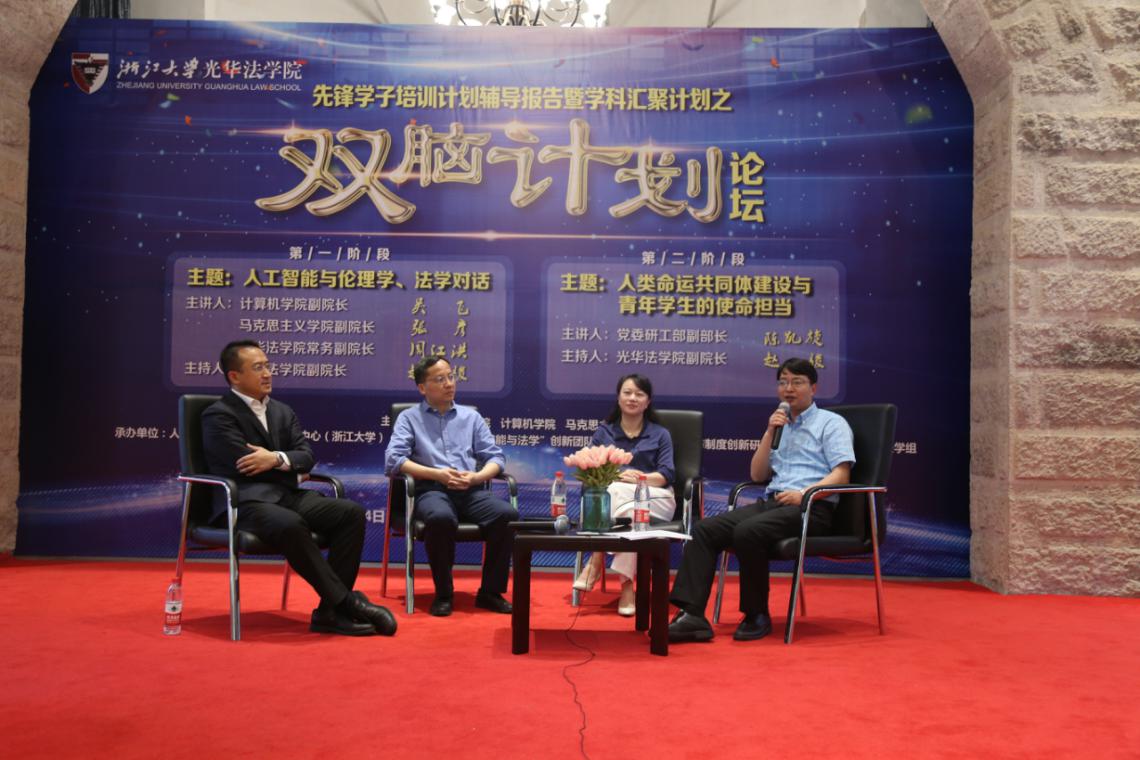 2019年5月24日下午,浙江大学光华法学院“先锋学子”培训计划辅导报告暨学科汇聚计划之双脑计划论坛在之江校区小礼堂举行。此次论坛由浙江大学光华法学院、计算机学院、马克思主义学院主办,人工智能省部共建协同创新中心(浙江大学)、光华法学院“人工智能与法学”创新团队、之江青年法治建设与制度创新研究中心、浙江省之江青年法学组共同承办。