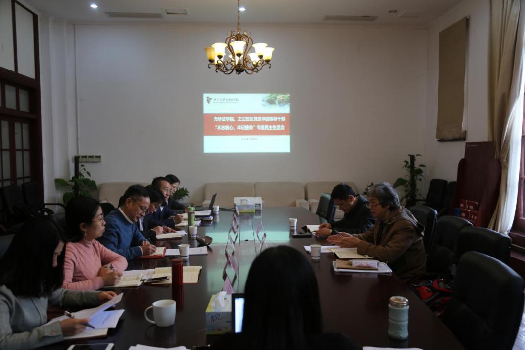 12月5日下午,光华法学院、之江校区党员中层领导干部“不忘初心,牢记使命”专题民主生活会在之江校区主楼208召开。学校第六巡回指导组组长薛金增、副组长吴子贵与会指导,法学院班子和之江校区班子成员参加了此次民主生活会。