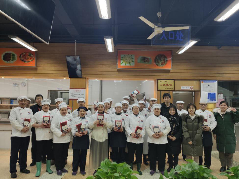 食堂温暖之行中,正在忙碌准备腊八福利的叔叔阿姨们暂时放下手中的炊具,来到大厅领取冬日暖礼,并同我们一起记录这温馨一刻。感谢他们为之江带来的四季三餐,感谢他们在后厨不断地完善菜谱,也希望我们的惊喜小礼品能够带给他们温暖以及真诚的感激。