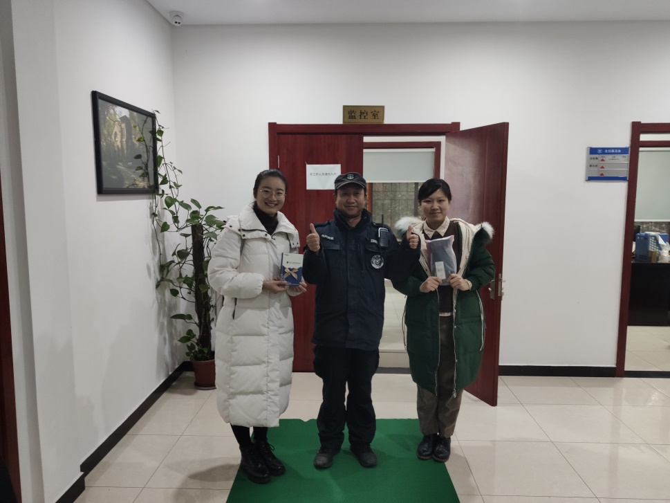 本次送温暖活动,学生权服中心和研究生会的同学们沿着后校门岗亭、食堂、宿舍楼、医务室、保卫办、前校门岗亭、水电中心、物业中心的路线,依次派发精心准备好的姜汤和小礼品。