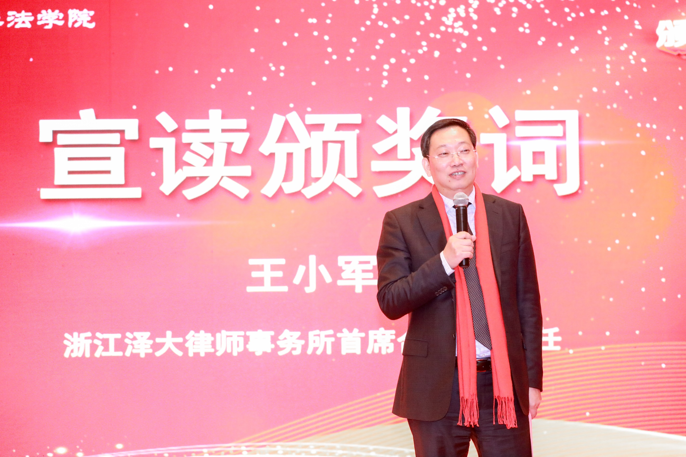 泽大律师事务所首席合伙人、主任王小军,董事合伙人钱梁,高级合伙人、工会主席金林蔚,运营事业部总经理助理任慧芳,光华法学院党委书记兼副院长张永华,光华法学院常务副院长、党委副书记周江洪,光华法学院副院长赵骏,光华法学院副院长郑春燕为各位获奖老师颁奖,十余位在校生代表为老师们献上鲜花。获奖老师们都表示感谢学院和浙江泽大律师事务所对他们教学工作的肯定,感谢支持和喜爱他们教学的学生们,这份鼓励更加坚定了他们对教学工作的热爱,以后会继续好好教书,好好育人。