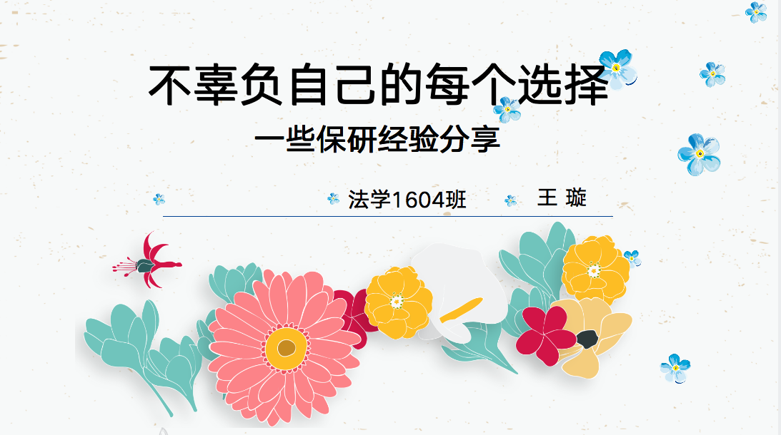 老师发言之后,班会顺利进展到了学长学姐经验分享环节。分享环节首先由16级本科生王璇发言,分享主题为《不辜负自己的每个选择——保研经验分享》。